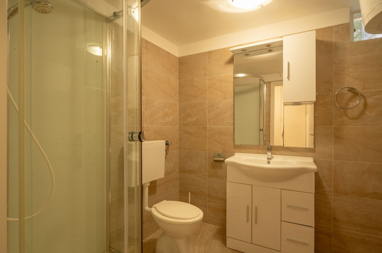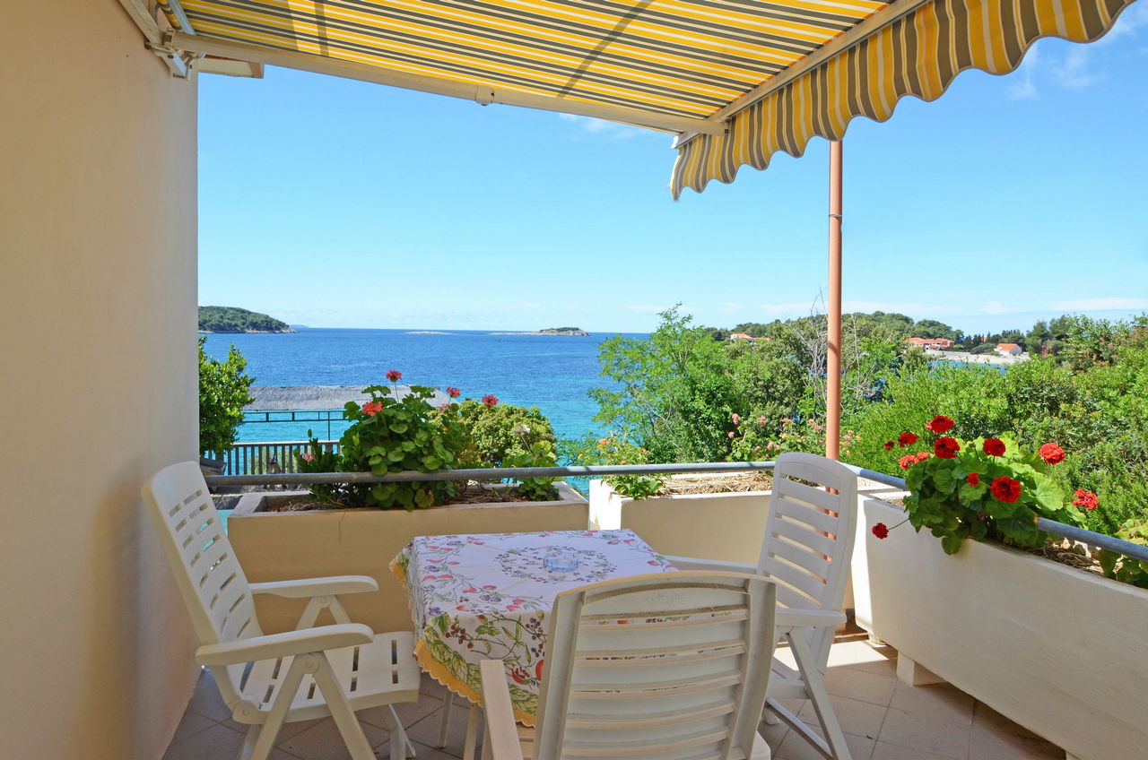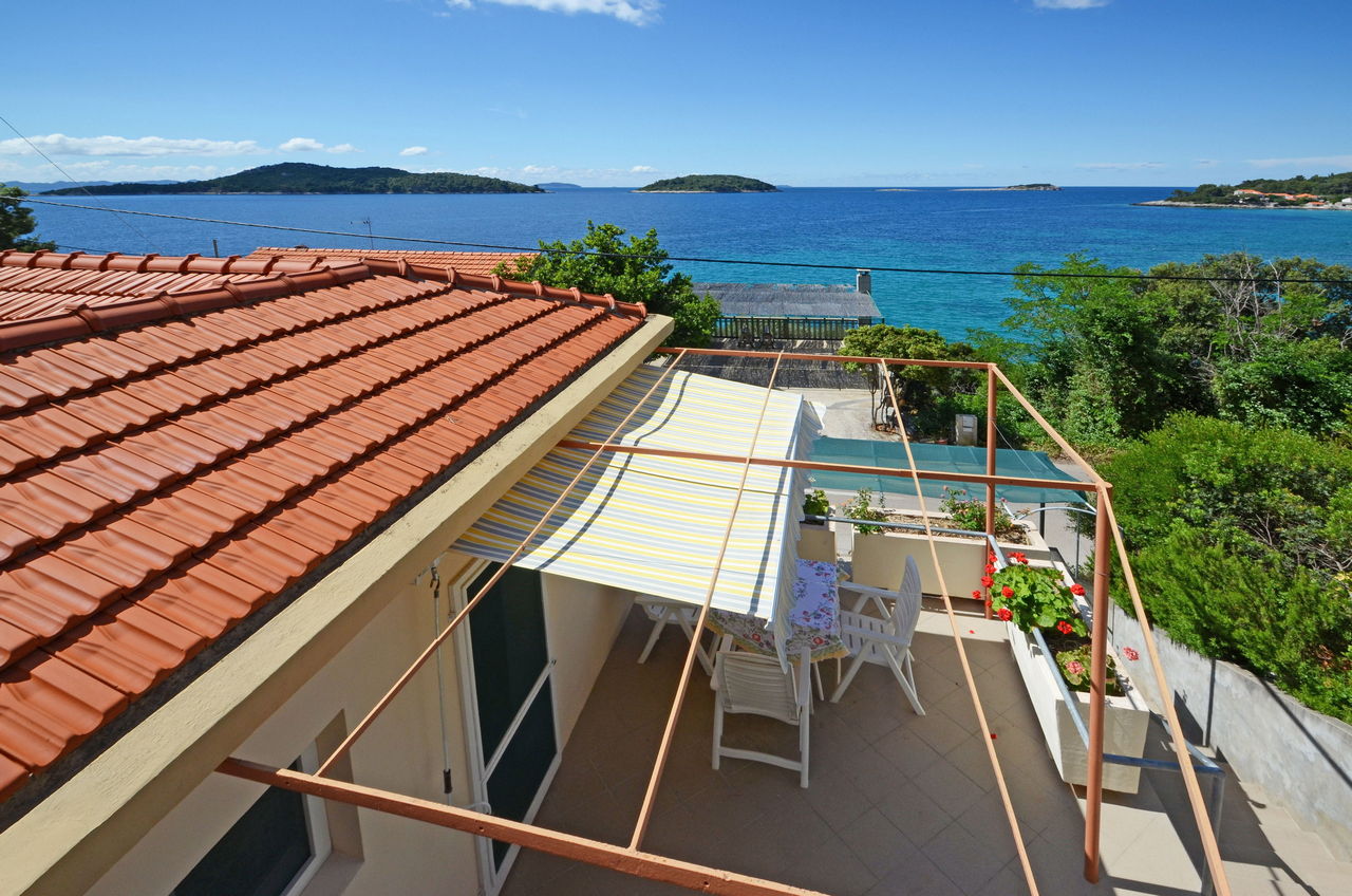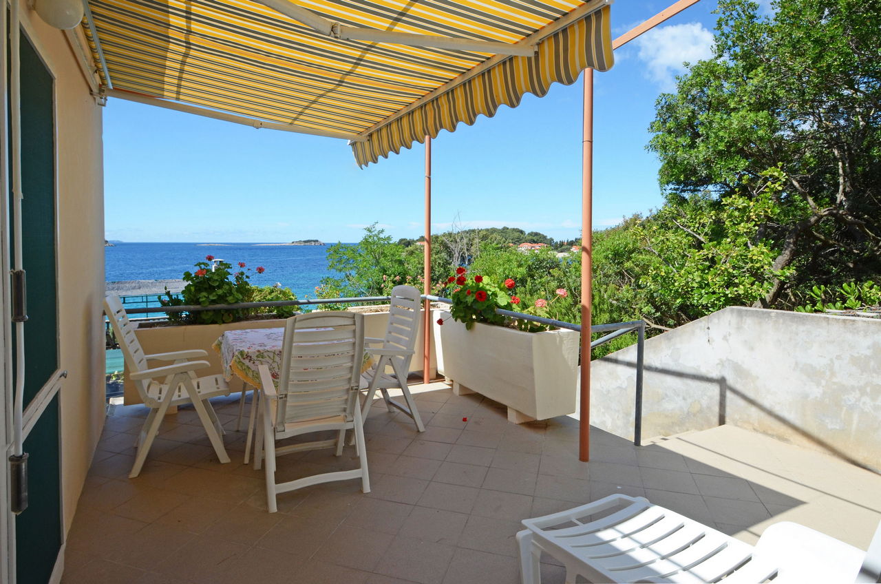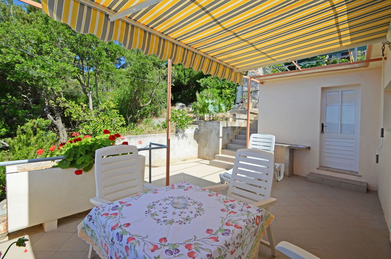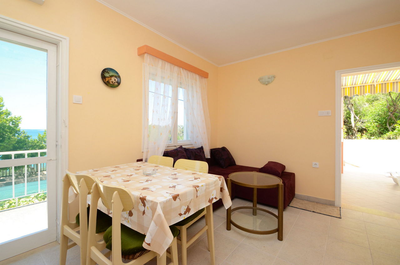 | Ovaj apartman je za 2-3 osobe. Nalazi se u odvojenoj kući koja je bliže moru. Ima jednu spavaću sobu s dvostrukim krevetom. U dnevnoj sobi je kauč na razvlačenje kao i TV. Apartman ima kupaonicu sa tušem. U apartmanu se nalazi opremljena kuhinja (kuhalo, hladnjak, posuđe). Apartman također ima prostranu terasu s pogledom na more. |