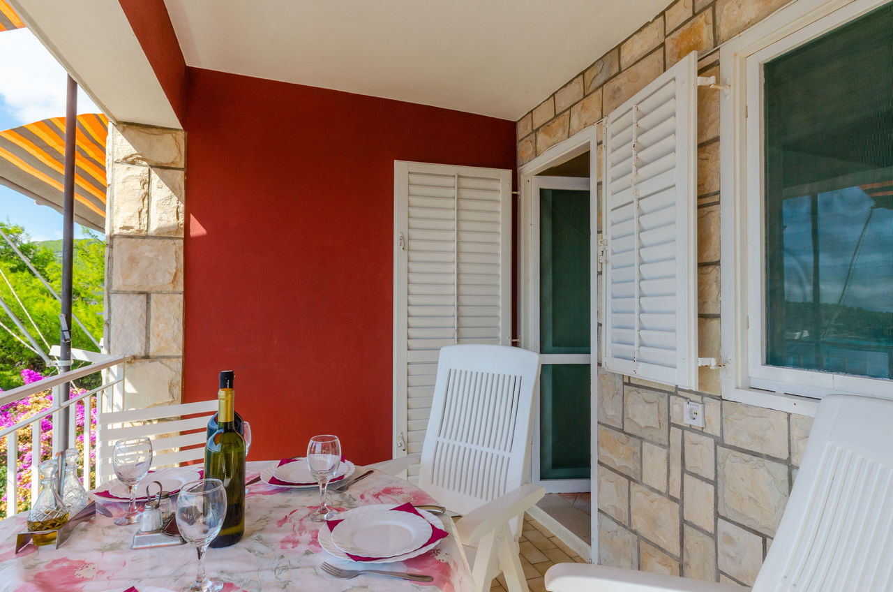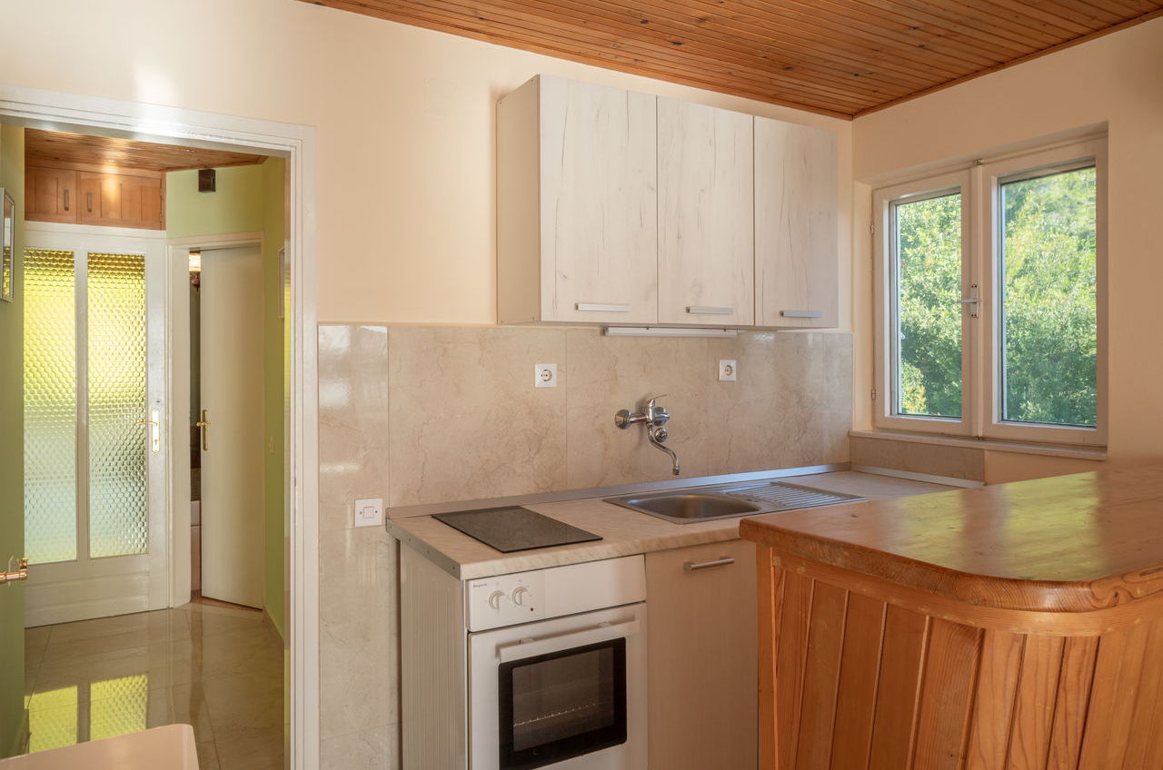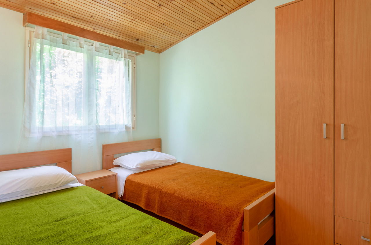 | This apartment is for 2+2 persons. It has one sleeping room with two single beds. One double bed is in the living room. The apartment has a bathroom with a shower. The apartment has fully equipped kitchen (kitchen with owen, refrigerator, dishes). There is a SAT TV in the apartment. The apartment has a nice veranda-terrace with a view to the sea. |