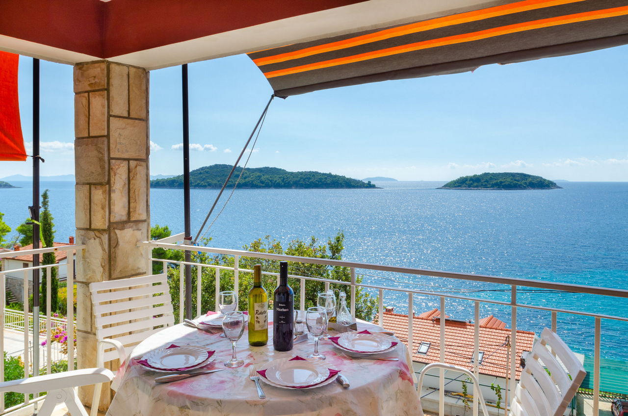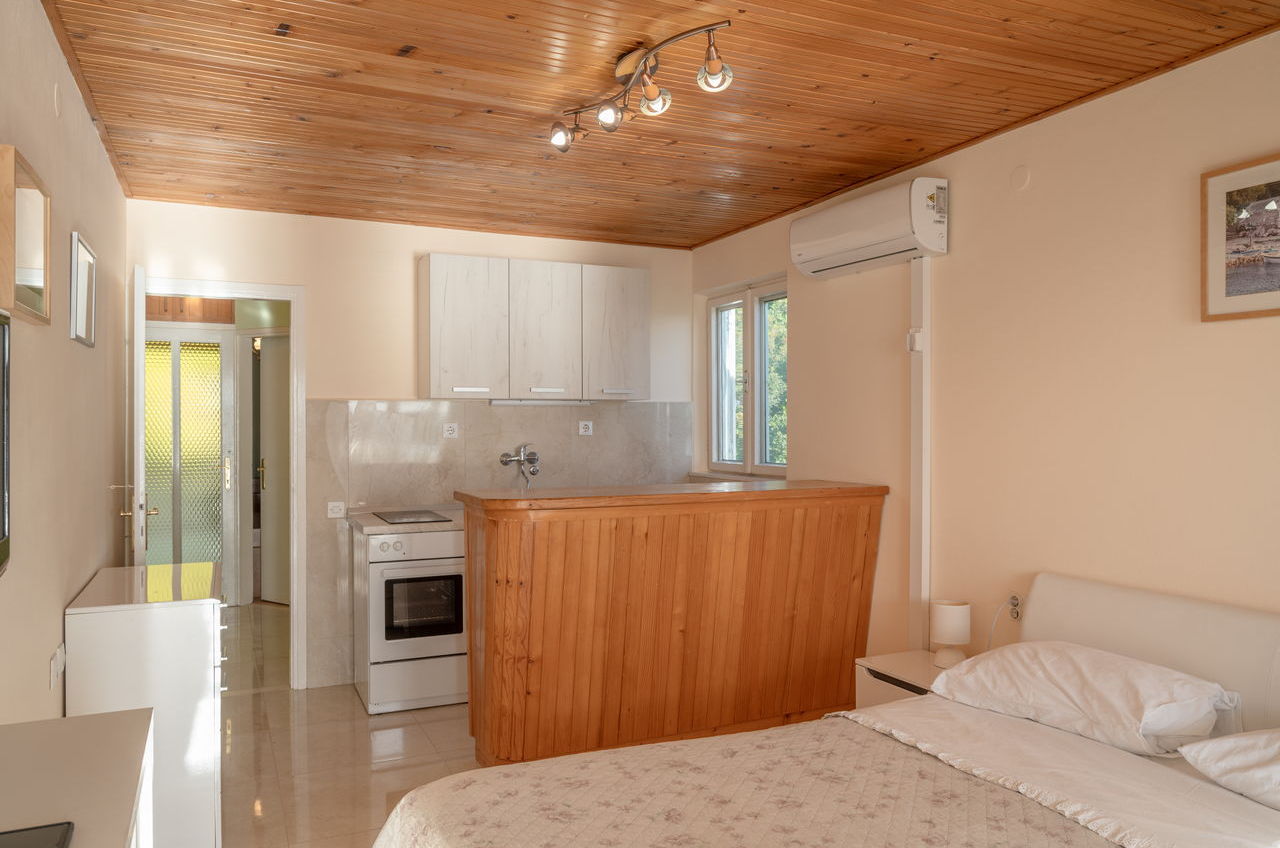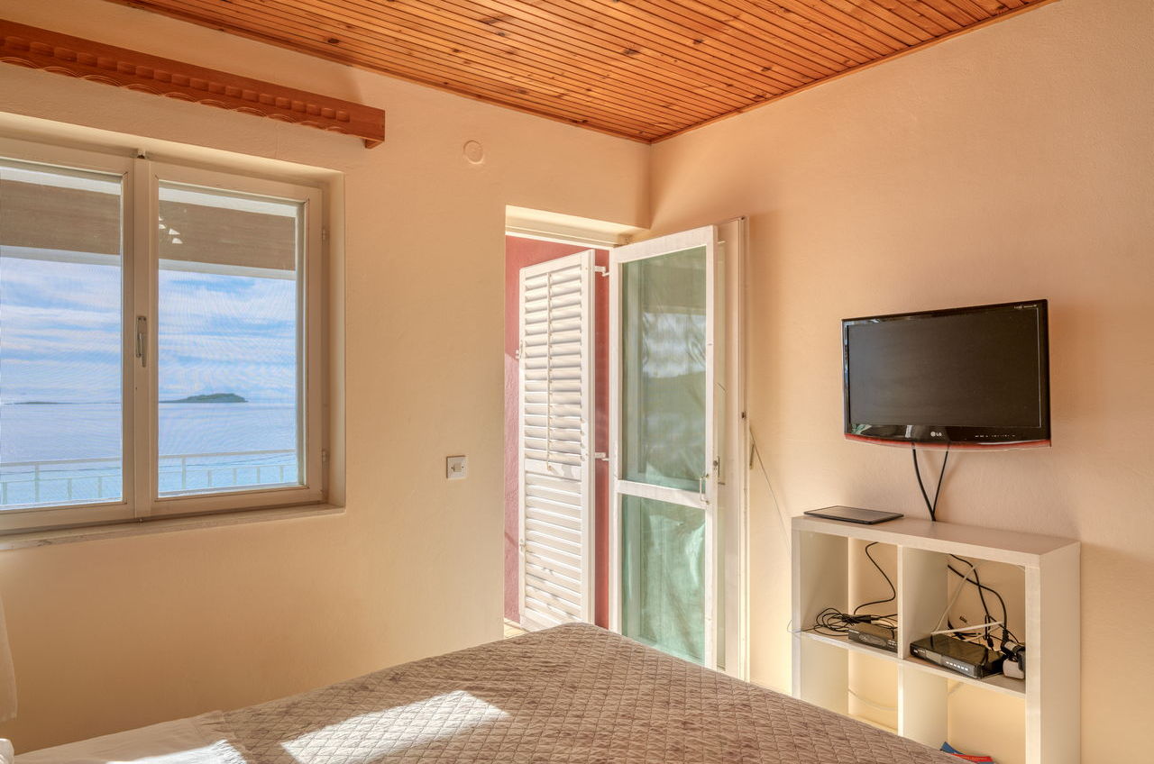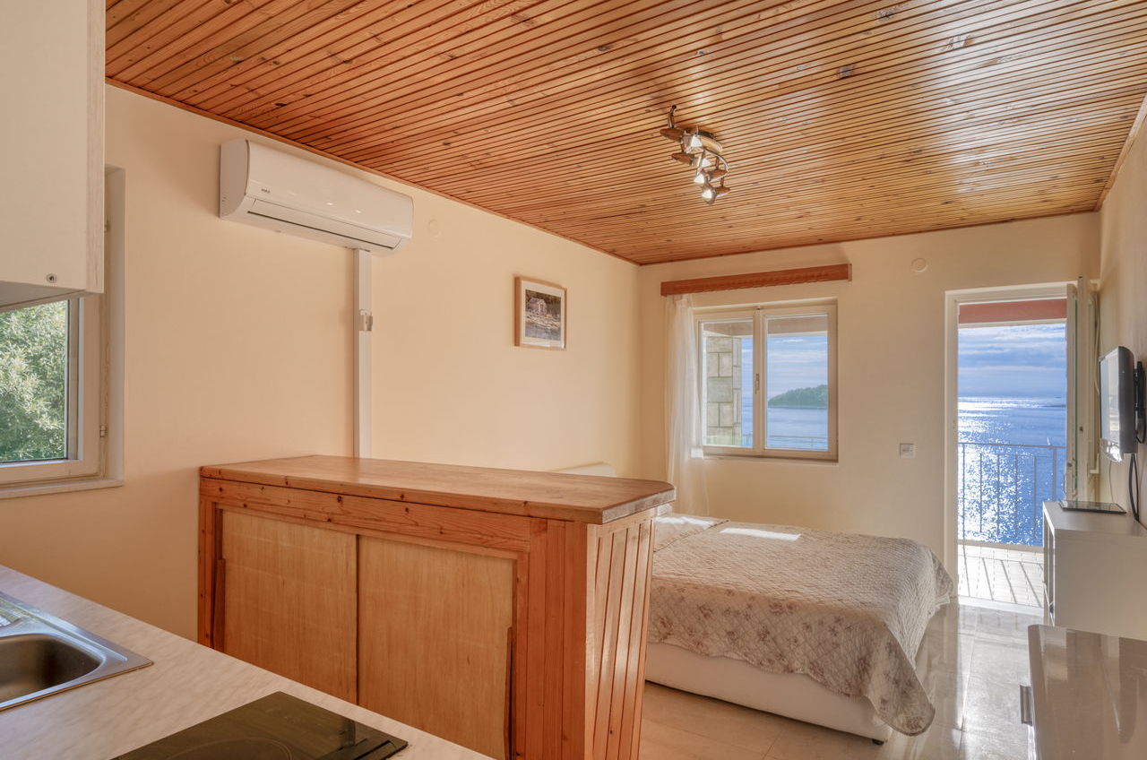 | This apartment is for 2+2 persons. It has one sleeping room with two single beds. One double bed is in the living room. The apartment has a bathroom with a shower. The apartment has fully equipped kitchen (kitchen with owen, refrigerator, dishes). There is a SAT TV in the apartment. The apartment has a nice veranda-terrace with a view to the sea. |