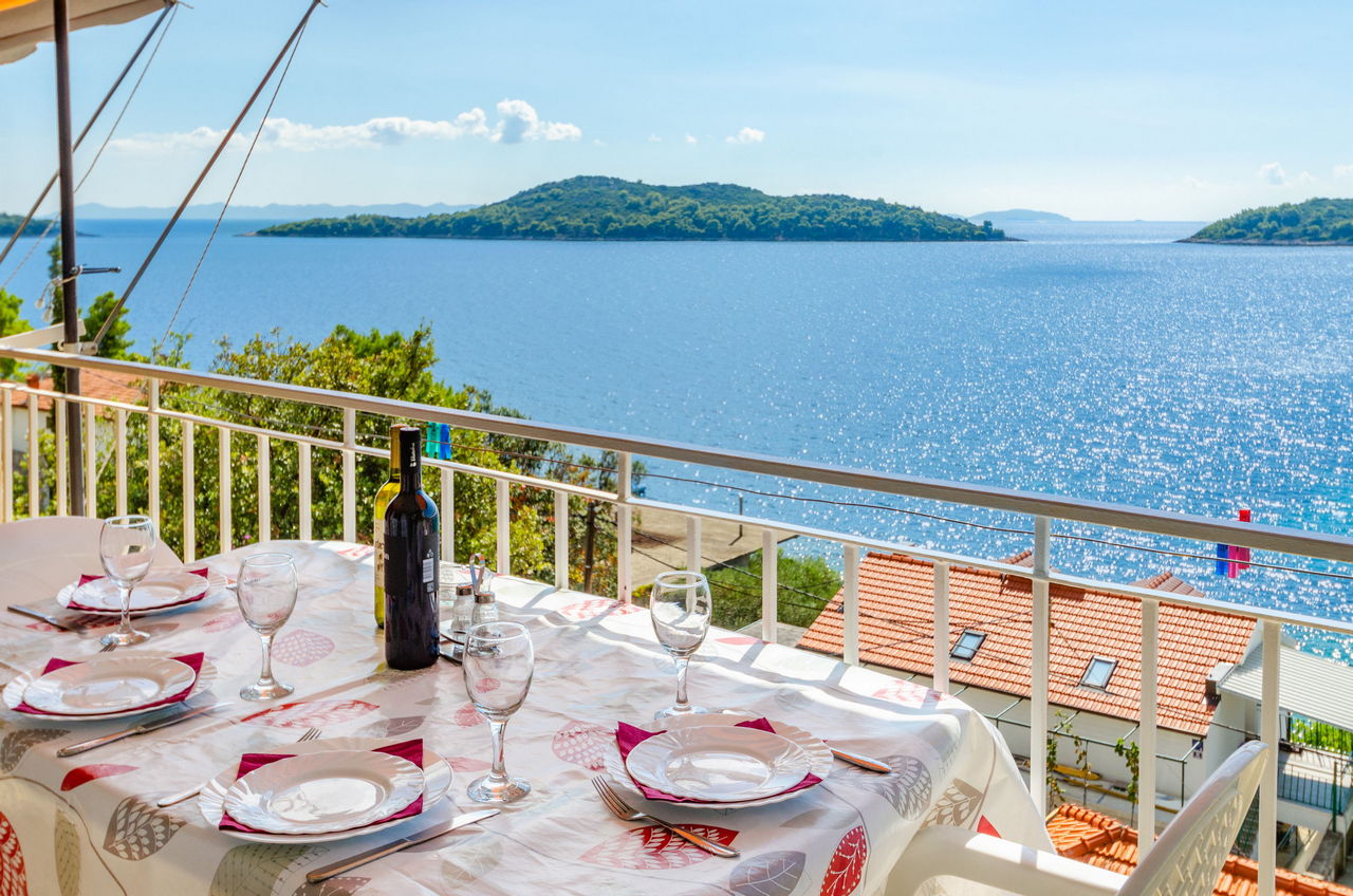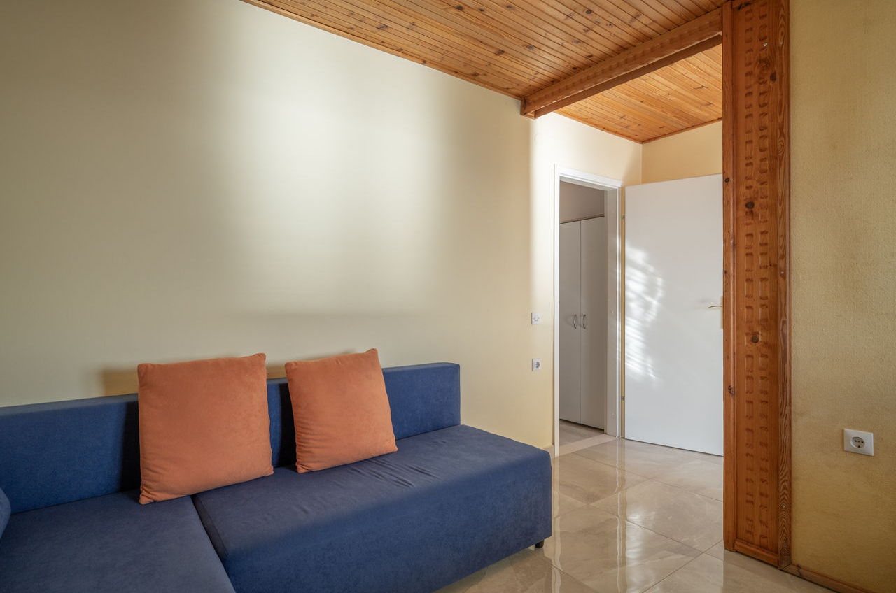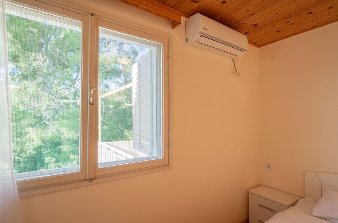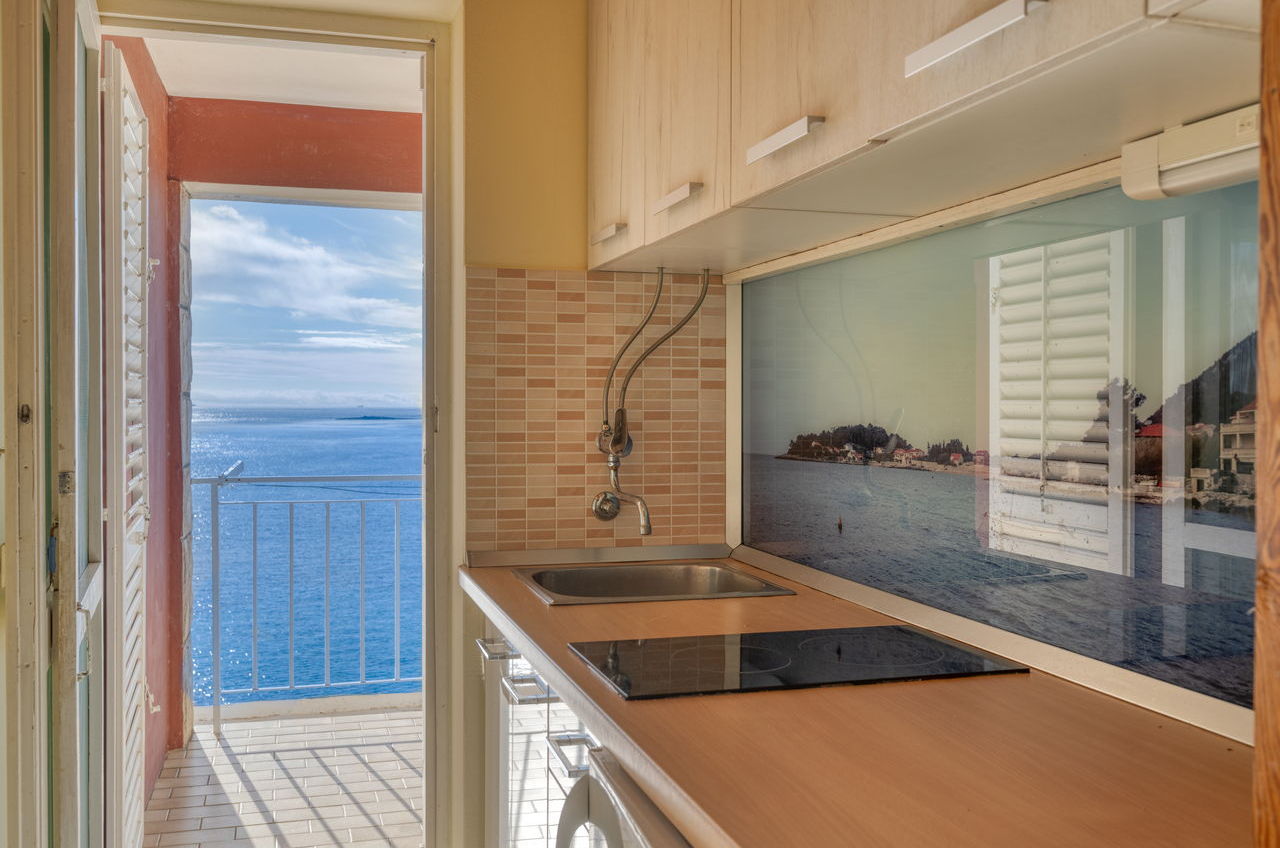 | This apartment is for 4 persons. It has one sleeping room with two single beds and a second sleeping room with a double bed. The apartment has a bathroom with a shower. The apartment has fully equipped kitchen (kitchen with owen, refrigerator, dishes). There is a SAT TV in the apartment. The apartment has a nice veranda-terrace with a view to the sea. |